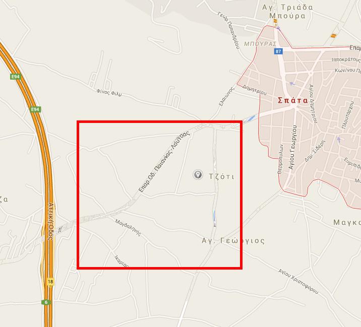 Περιγραφή : Αγροτεμάχιο 3.000 τ.μ., πλησίον εξόδου εξόδου Παιανίας-Σπάτων Αττικής οδού, 35.000 €, εκτός σχεδίου.